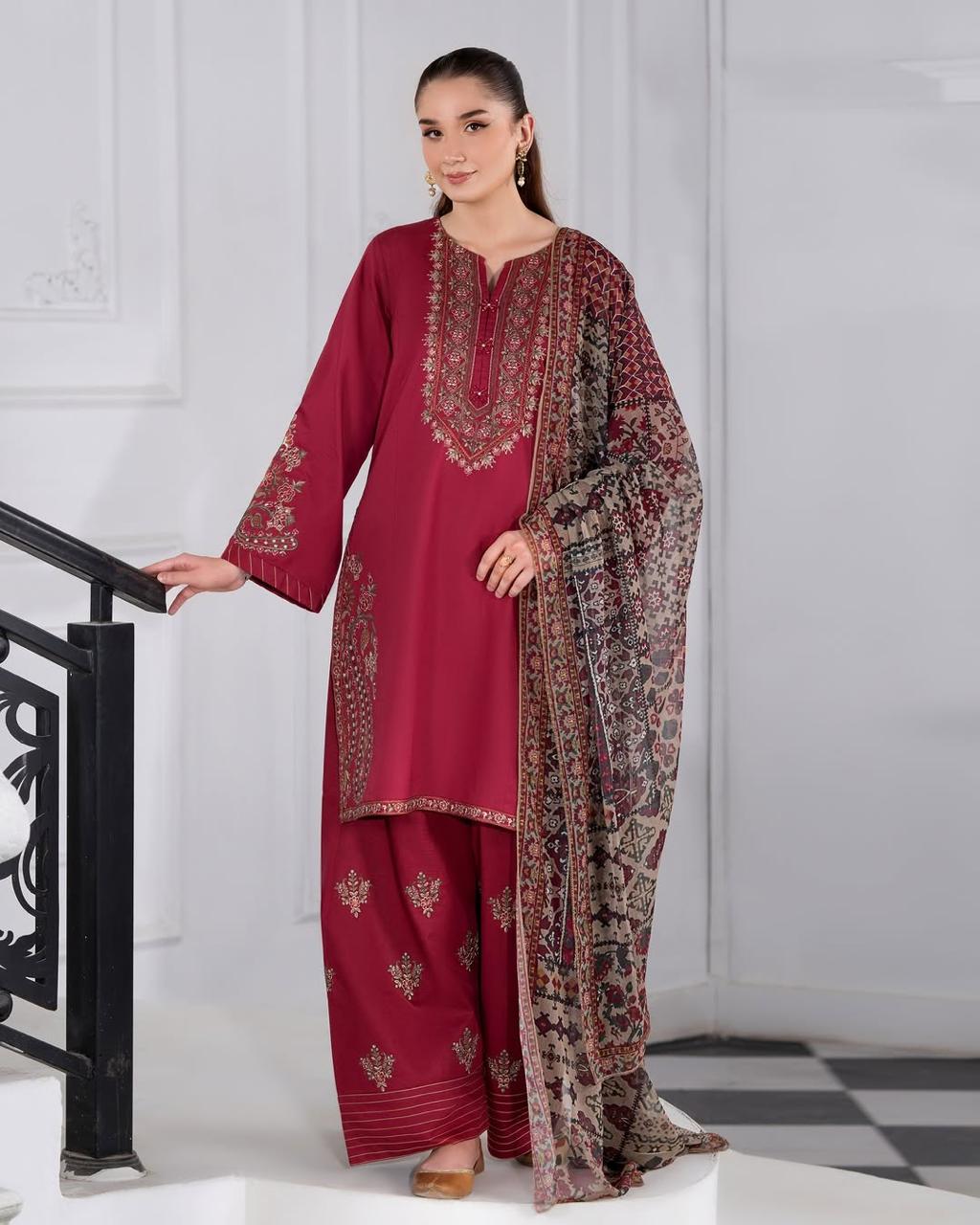 Perfect as party wear dresses or even wedding party wear dresses for women, the Abira Emb 3pc is a statement piece for gatherings, festive events, and evening occasions. Whether you are shopping during the winter dresses sale or upgrading your collection before the end season, this outfit promises class, comfort, and long-lasting charm.