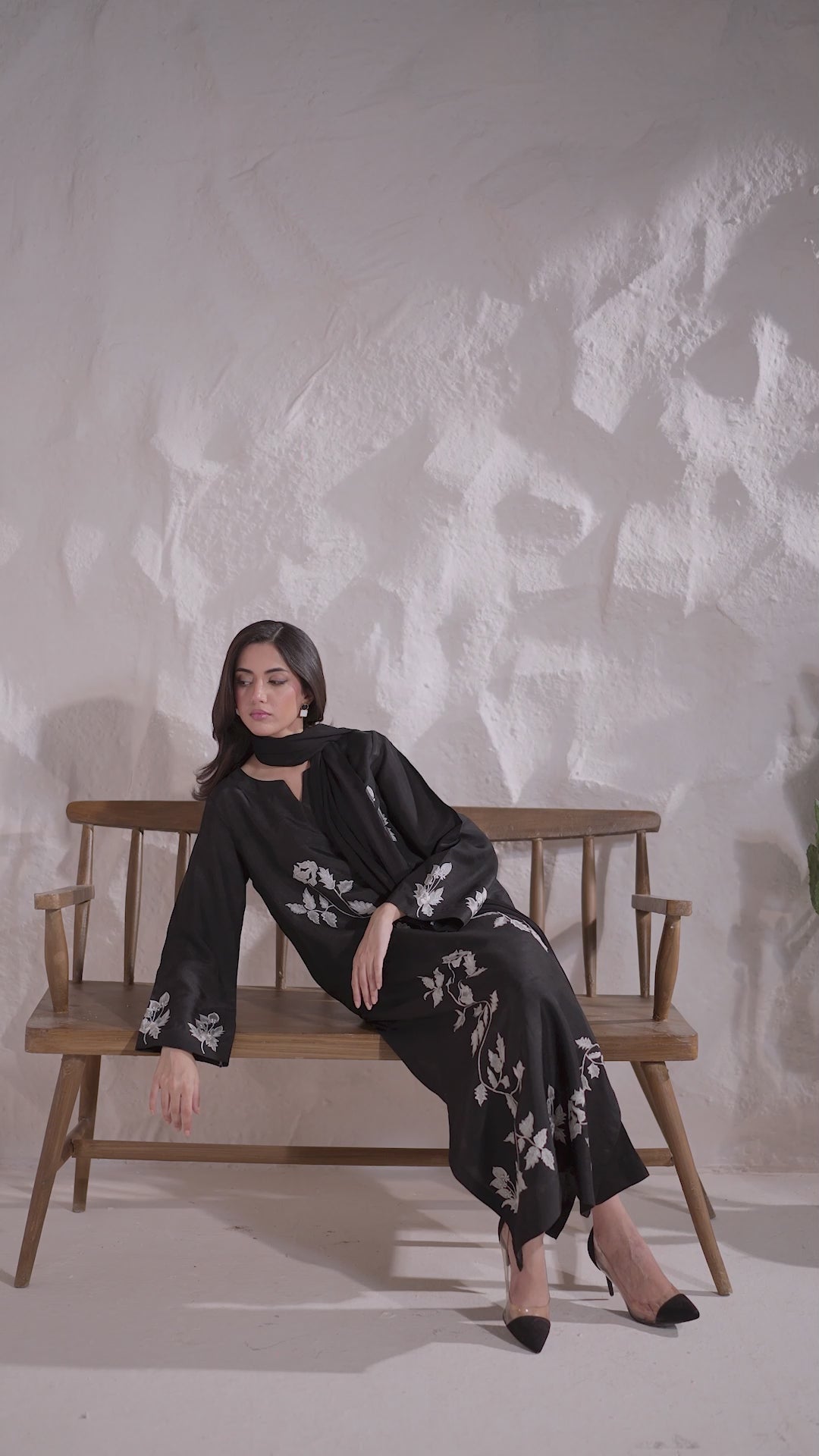 Additional Description: This exquisite Women's Daily Wear Kurta Set from zora features a black, cotton short kurta with intricate embroidered detailing. Paired with a straight trouser in cotton and a chiffon dupatta, this 3-piece set is perfect for summer wear. The regular fit and lining attached as shown in the picture add to its allure. Elevate your wardrobe with this chic ensemble.