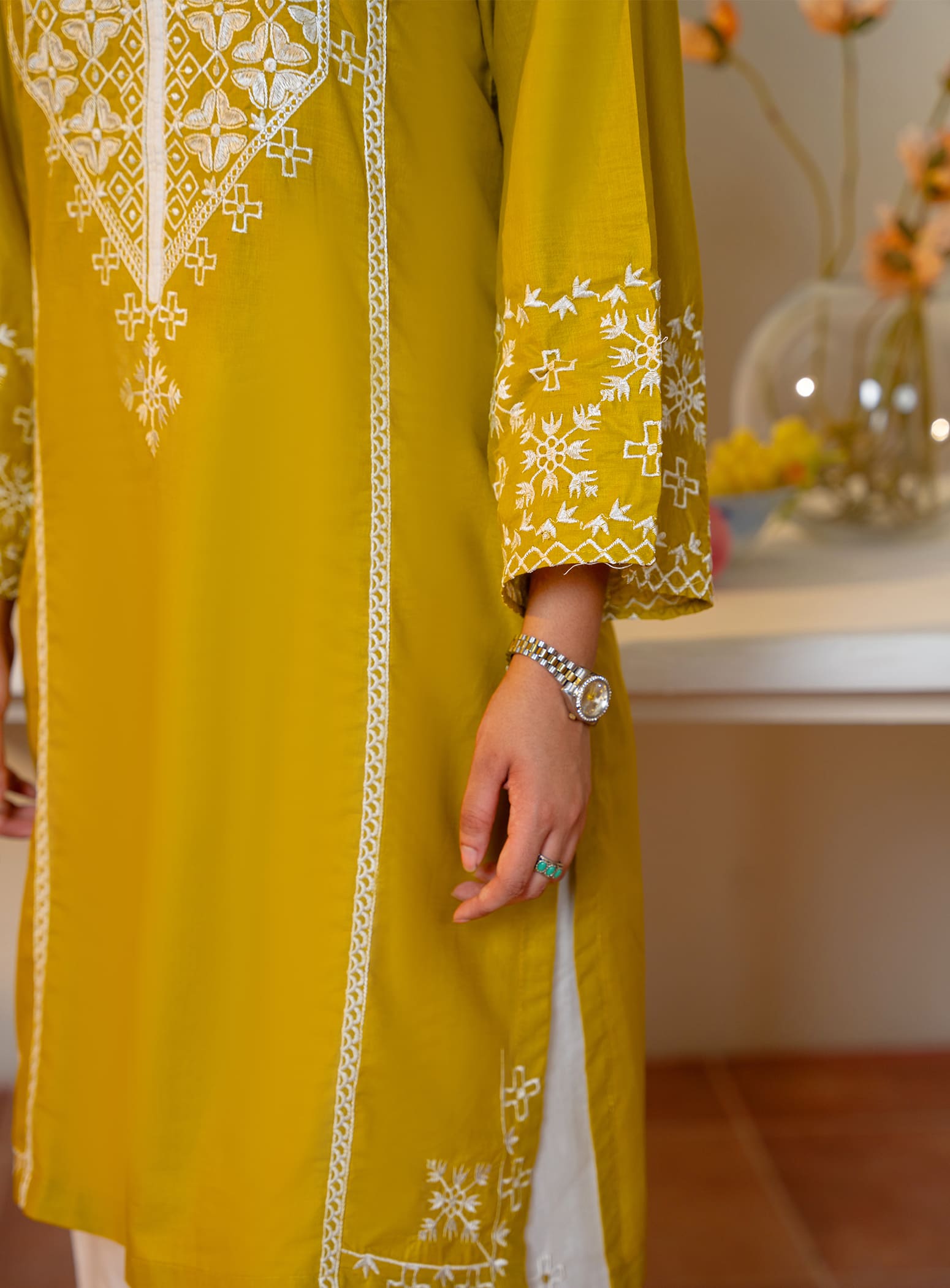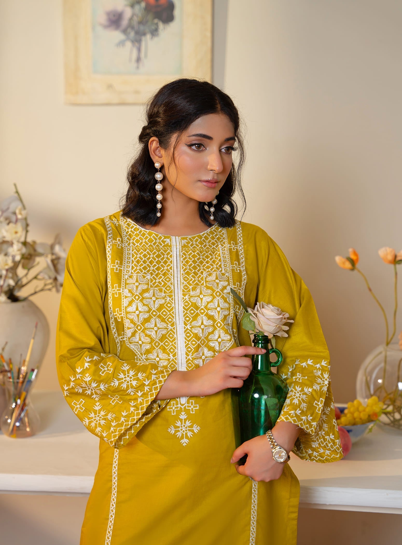 Made from breathable cotton fabric, this set includes a beautifully embroidered long kurta, paired with a comfortable straight trouser and a soft matching dupatta. Designed with an attached lining for a polished look, this outfit is perfect for daily summer wear – chic, light, and elegant.