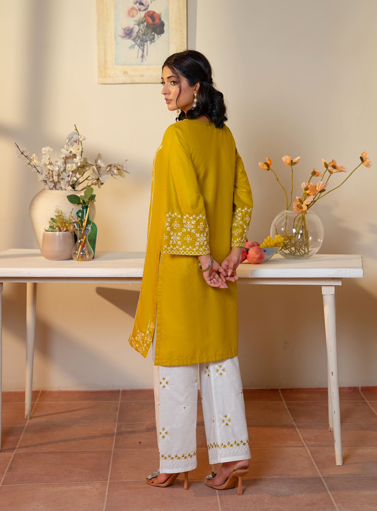 Bring sunshine to your wardrobe with the Yellow 3-Piece Cotton Kurta Set by zora. ☀️